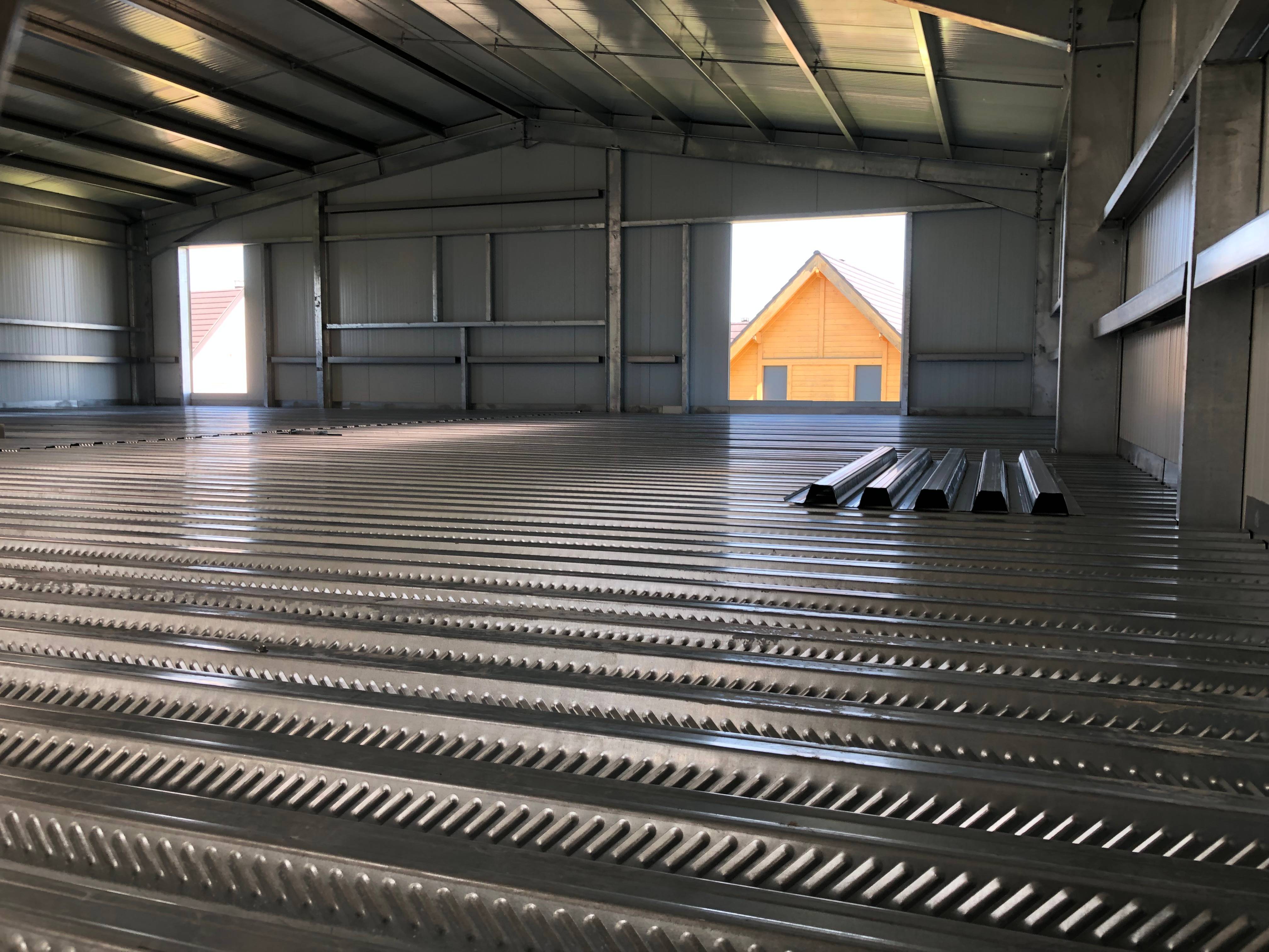 - Des tôles translucides ou exutoires de fumée pour laisser entrer la lumière naturelle.