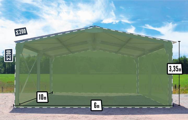 - 60m² de surface couverte pour le stationnement de vos véhicules ou le stockage de votre matériel