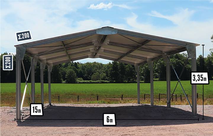 Abri bi-pente en kit - 6x15x3,35m