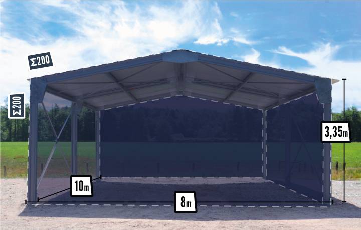 - Robustesse de la structure grâce aux profils Σ : la plus grande dimension sur le marché des abris, plus rigide qu'un profil C