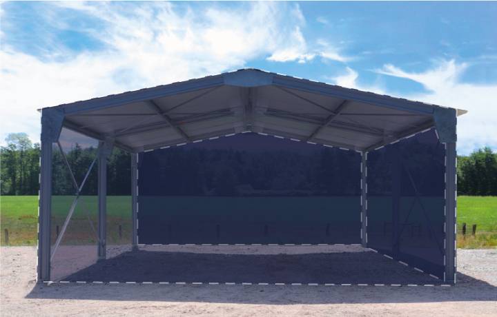 Mettez à l'abri vos véhicules et matériel avec notre carport en kit de 40m² à structure acier galvanisé à chaud et couverture de tôles laquées 5 ondes renforcées 1er choix. Abri bi-pente en kit disponible immédiatement pour une livraison rapide, montage facile et durabilité exceptionnelle !