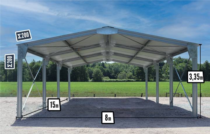 120m² de surface couverte pour le stationnement de vos véhicules ou le stockage de votre matériel