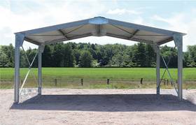Stockez et protégez votre matériel grâce à ce carport de 40m² en kit couvert de tôles laquées 5 ondes renforcées 1er choix. Abri bi-pente en kit 100% galvanisé. Livré rapidement et simple à monter !