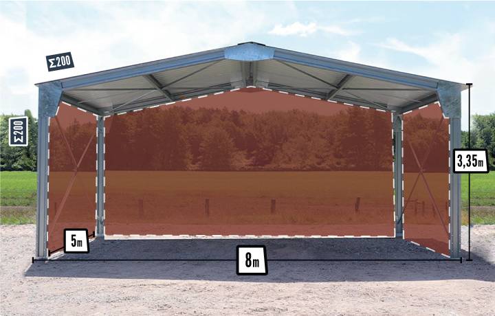 Grande hauteur (3.35m en bas de pente) : idéal pour abriter de grands véhicules