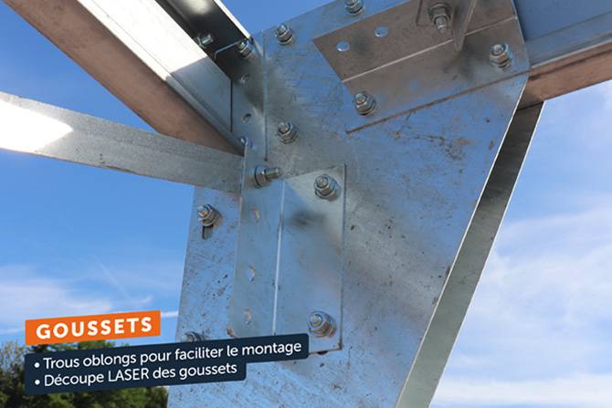 - Montage aisé, même sans connaissance technique, à l'aide d'un outillage léger, grâce aux trous oblongs, aux poteaux prés-percés à fixer, à la boulonnerie zinguée, aux fixations, aux vis auto-foreuses et aux profil Σ très maniables