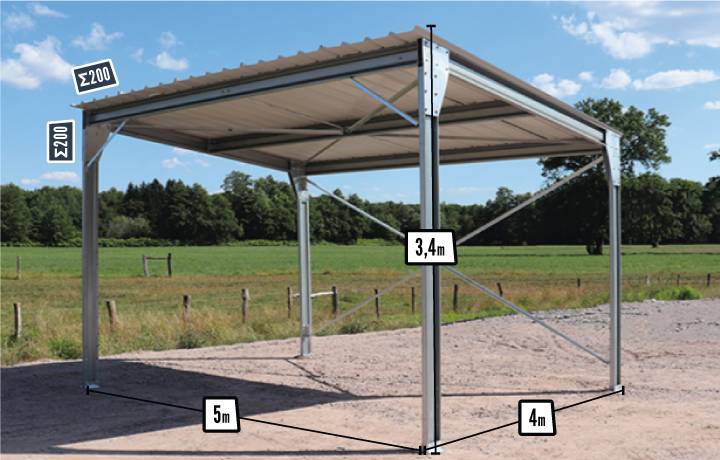Abri de voiture monopente en kit - 4x5x3,4m