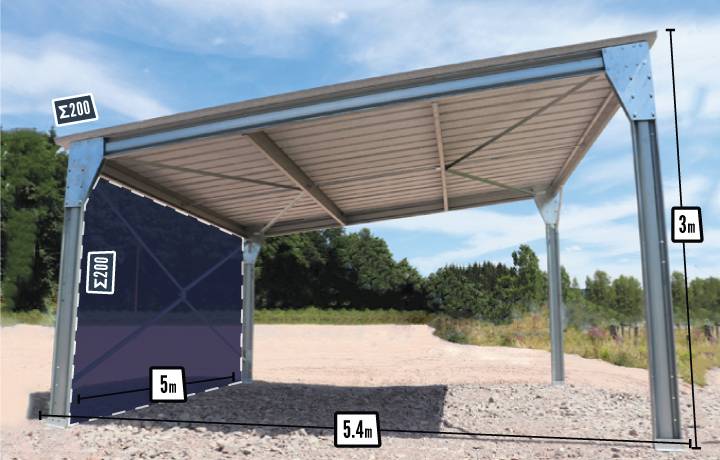 - Robustesse de la structure grâce aux profils Σ : la plus grande dimension sur le marché des abris, plus rigide qu'un profil C