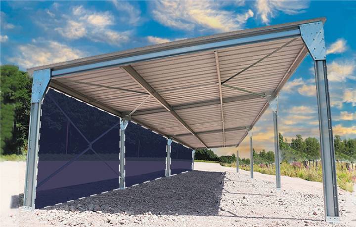 Optez pour notre abri en kit monopente de 81m² offrant une généreuse surface couverte de 81m² pour abriter matériels et voitures ou camping-car. Durable et robuste grâce à sa structure en acier galvanisé à chaud et sa couverture en tôles 1er choix à 5 ondes renforcées. Montage gacile garantie, disponible immédiatement pour une livraison rapide
