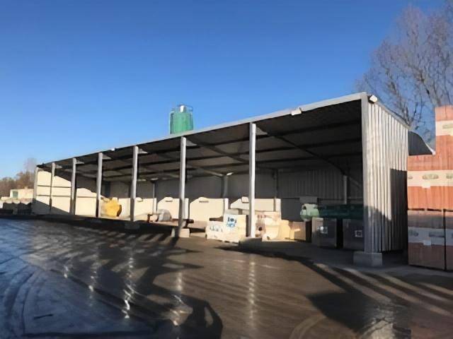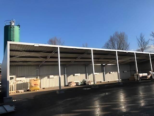 Le bâtiment, d'une surface de 280m², est spécialement conçu pour répondre aux besoins de M. Thivillier. Il offre une profondeur de 8m, une largeur d'environ 30m, et une hauteur de passage et de circulation de 4m. Équipé d'un fond et de deux côtés fermés et étanches, il reste ouvert à l'avant pour faciliter les opérations de stockage et de déstockage.