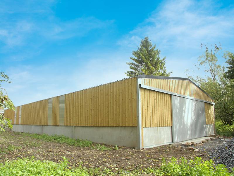Le Hangar en kit avec bardage bois que vous voyez sur la photo est robuste et complètement fermé. En effet vous pouvez cumuler, comme le témoigne M. Fievet, une solution durable et en accord avec l’esthétique voulu pour sa bergerie : « La conception du bâtiment correspond à ce que j’attendais, au niveau de la préparation et livraison, impeccable, il ne manquait rien ! ».