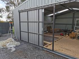 Pour M. Dolbeau, nous avons fourni un abri de la gamme standard. Cet abri bipente fermé, d'une largeur de 8m et d'une longueur de 5m, est doté d'un régulateur de condensation et de tôles translucides.